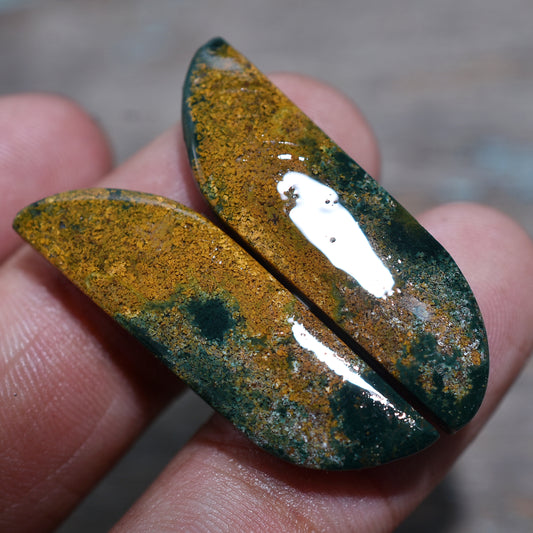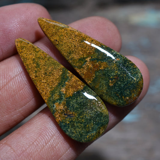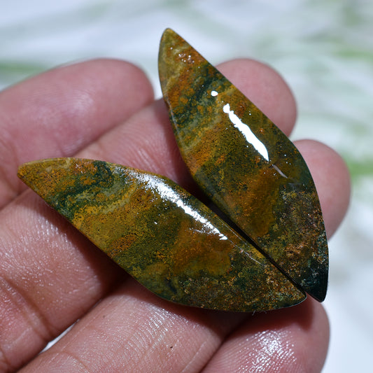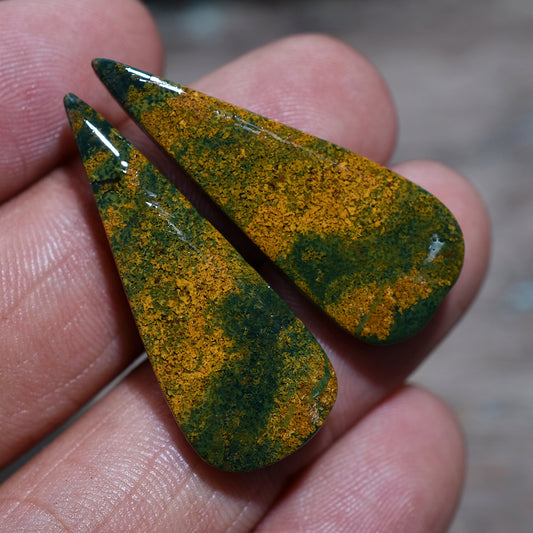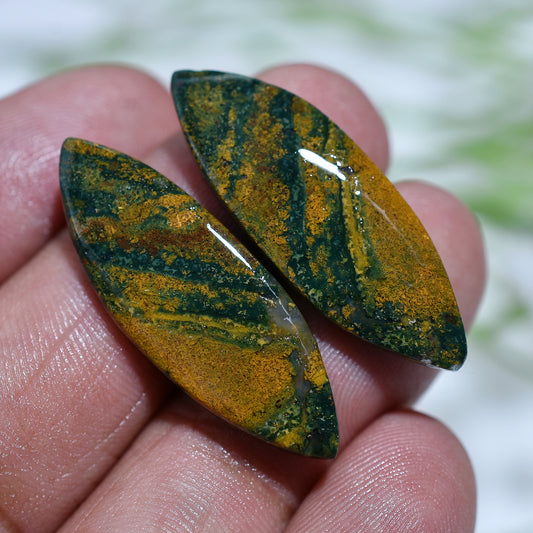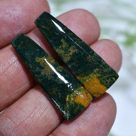 Tapered Bloodstone Gemstone Pair – Natural Matched Cabochons for Earrings
