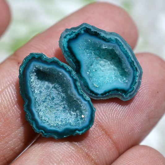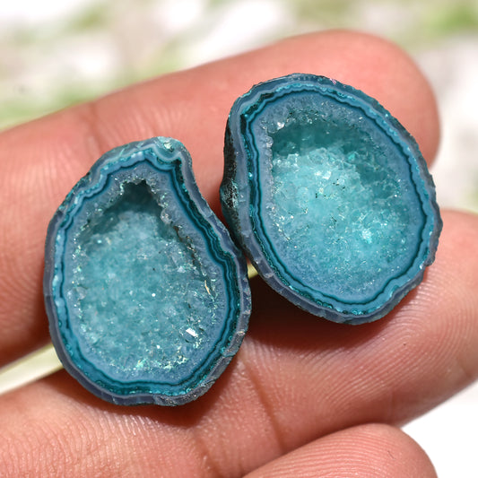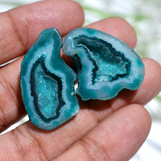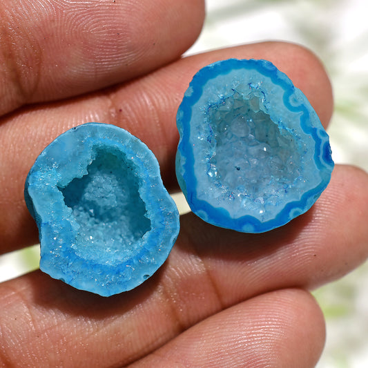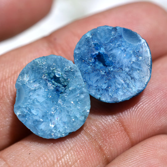 Shimmering Blue Fancy Solar Quartz Pair – Druzy Sparkle Stones for Creative Jewelry