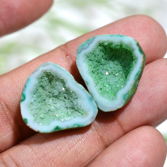 Sparkling Green Solar Quartz Pair – Crystal Druzy Gemstone for DIY Jewelry