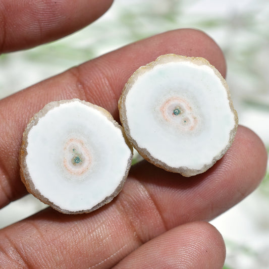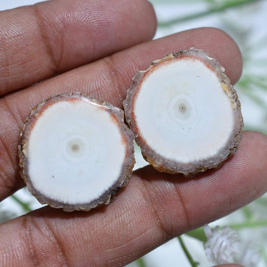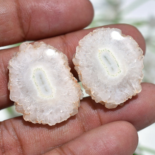 Exquisite White Solar Quartz Gemstone Pair – Stalactite Slices for Artisan Jewelry