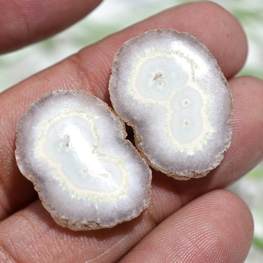 Glacial Glow Quartz Pair – White Solar Slice Geodes Gemstone Pair for Artisan Jewelry