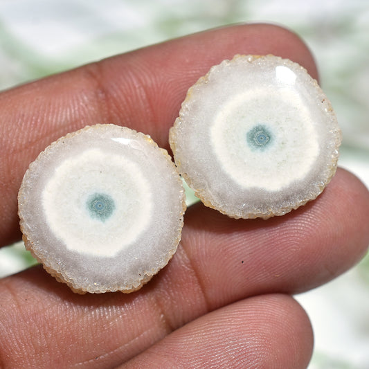 Elegant Fancy Solar Quartz Druzy Window Gemstone Pair– Bulging Geode Crystal Slice for Jewelry