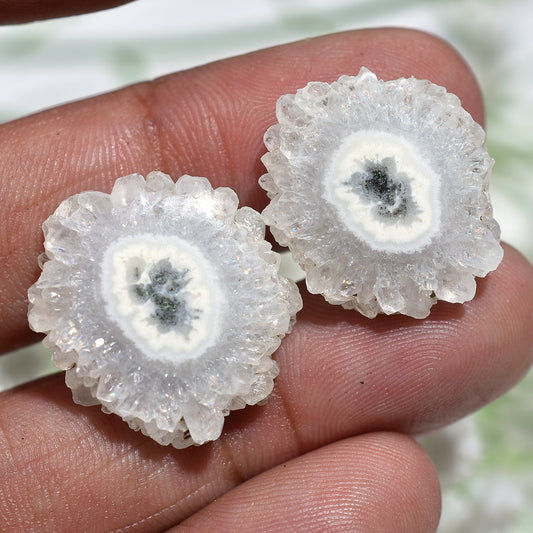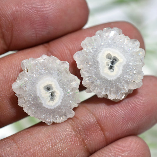Icy White Solar Quartz Stalactite Slice Gemstone Pair – Radiant Pair for Earring Designers