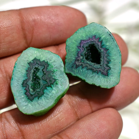 Artisan Solar Quartz Druzy Gemstone Pair– Natural Bulging Geode for Crystal Craft Supplies