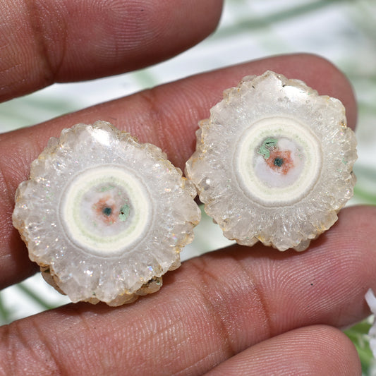 Celestial White Solar Quartz Stalactite Gemstone Pair – Unique Slices for Artisan Earrings