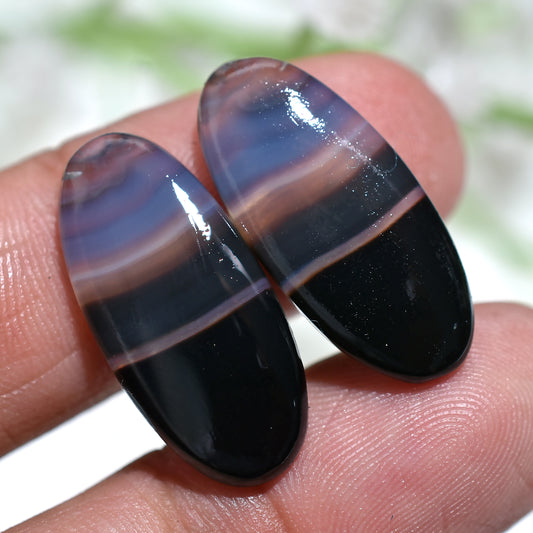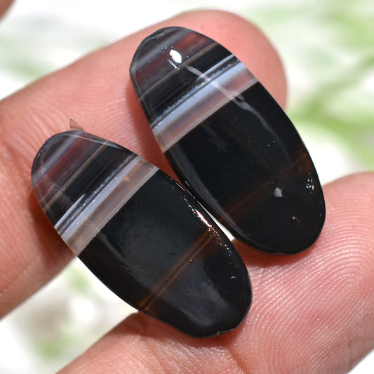 Exclusive Black Banded Agate Matched Pair – Loose Stones For Jewelry Crafting