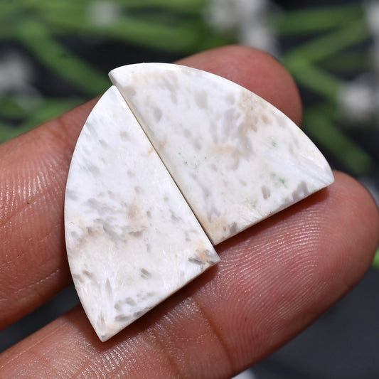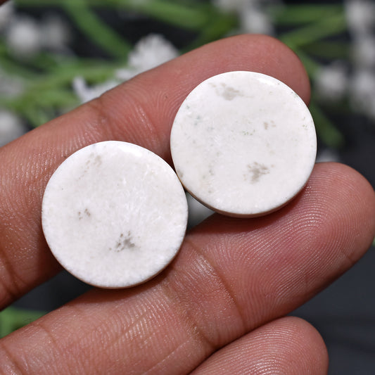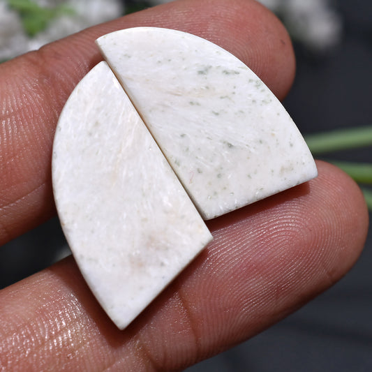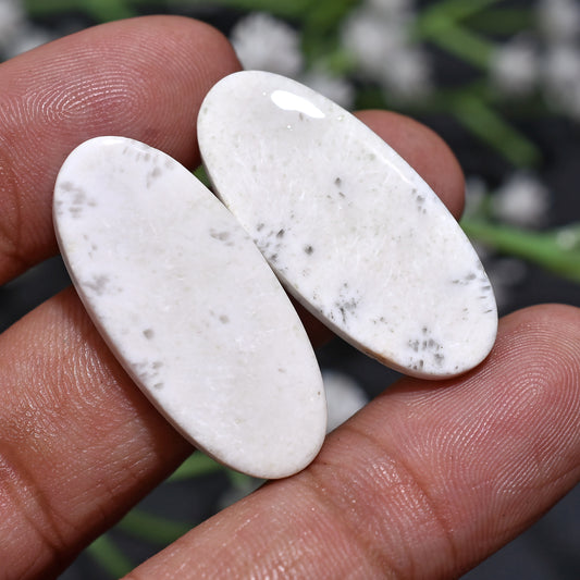 Exquisite Scolecite Matched Gemstone Pair – Unique White Cabochons for Jewelry Makers