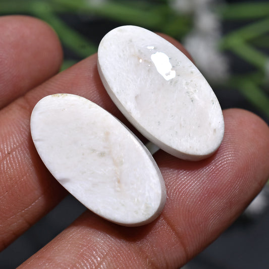 White Scolecite Oval Gemstone Pair – Premium Loose Stones For Designers