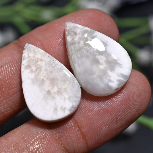 Designer White Scolecite Pair – Wholesale Smooth Gemstone Matched Pair For Earrings