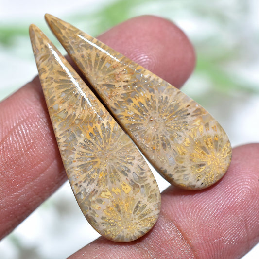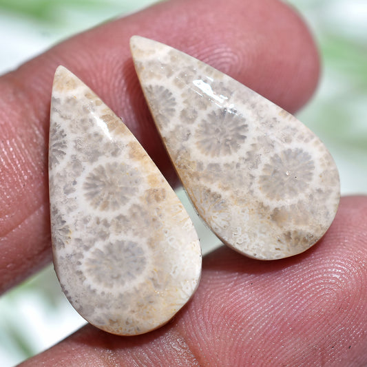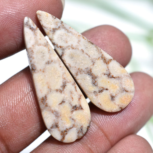 Exclusive Fossil Coral Teardrop Pair – Elegant Cabochons for Designers