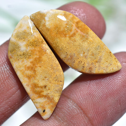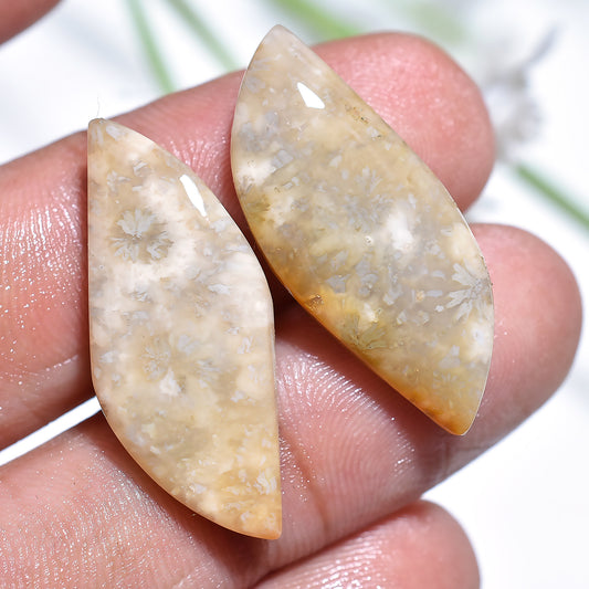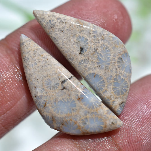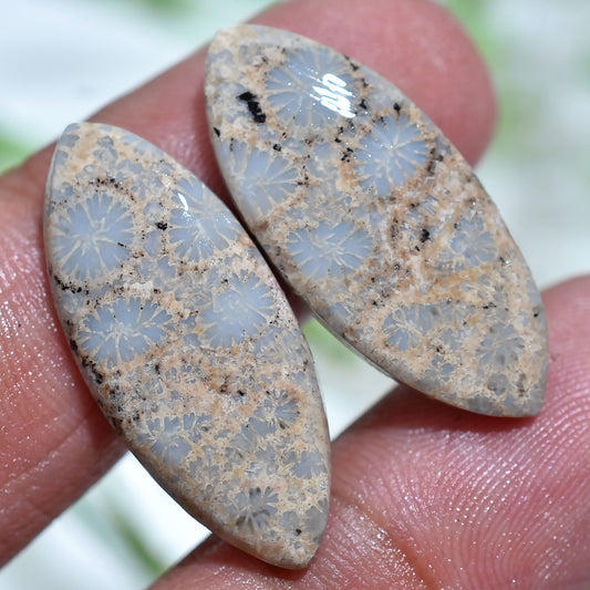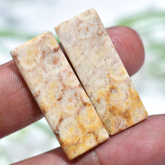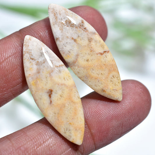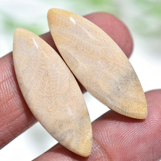 Natural Fossil Coral Gemstone Pair - Polished Fancy Cabochons Set for Jewelry Making(10x25x3mm,/28ct)