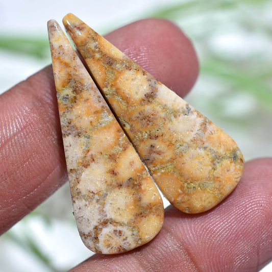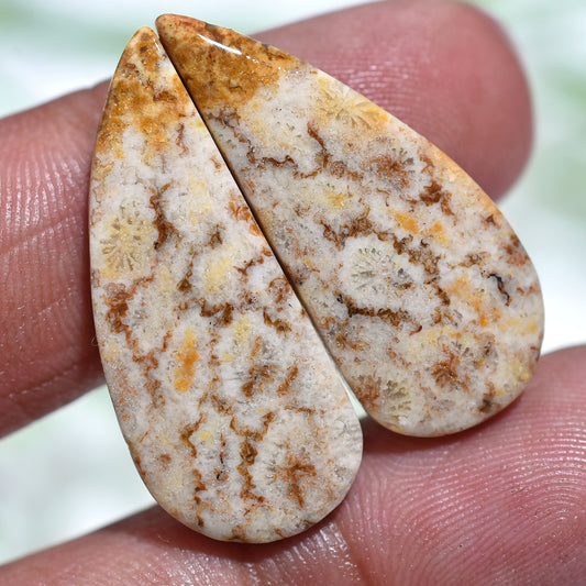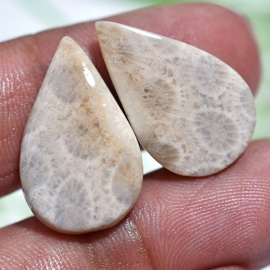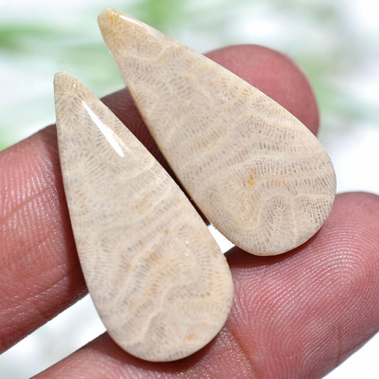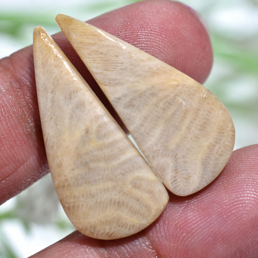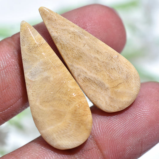 Natural Fossil Coral Matched Pair – Exquisite Teardrop Cabochons