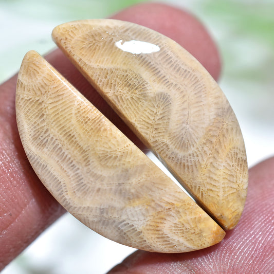 Premium Fossil Coral Cabochons – Natural Hand-Polished Pair