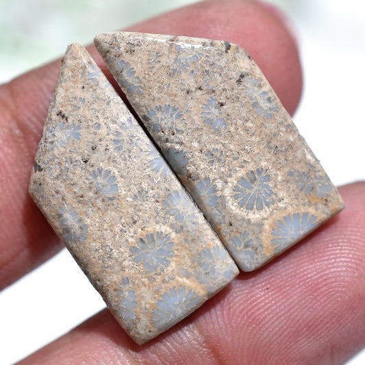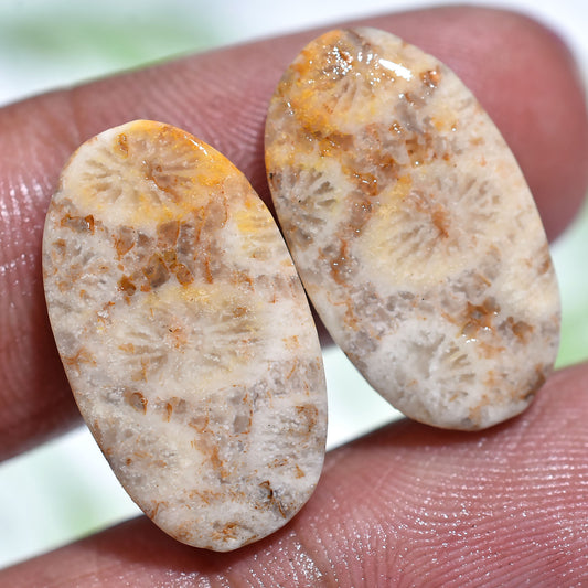 Handmade Fossil Coral Cabochon Pair – Perfect for Jewelry Making