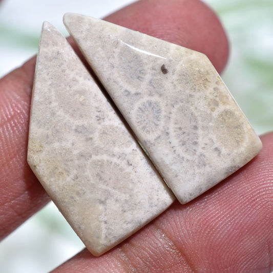 Gorgeous Fossil Coral Earring Stones – Wholesale Loose Gem Pair