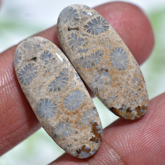 Premium Fossil Coral Cabochon Pair – Unique Fossilized Gemstones(10x25x3mm,/28ct)