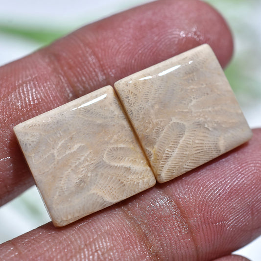 Unique Fossil Coral Jewelry Stones – Handcrafted Square Matching Pair