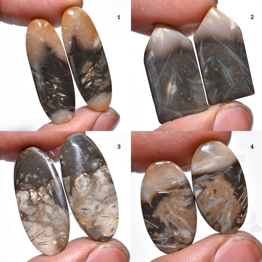 Palm Root Agate Pair Cabochon - Matched Earring Pair Gemstones for Custom Jewelry