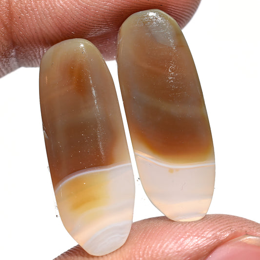 Natural Orange Banded Agate Matched Cabochon Pair for Earrings