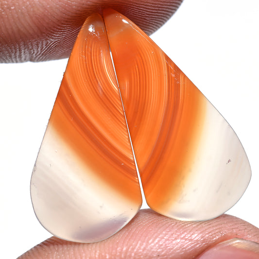 Natural Orange Banded Agate Pear Shaped Cabochon Pair