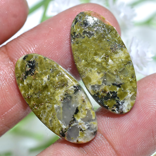 Natural Unakite Pair Cabochons, Smooth Flat Back Gemstones for Earrings