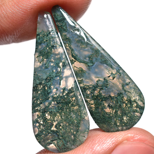 Teardrop Moss Agate Pair – Exquisite Natural Gemstone for Artisan Jewelry