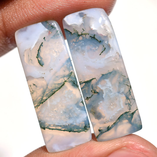 Elegant Rectangle Shape Moss Agate Pair – Natural Healing Gemstones
