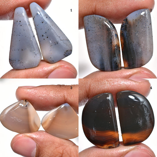 Natural Montana Agate Matched Pair – Unique Gemstones for Jewelry Making