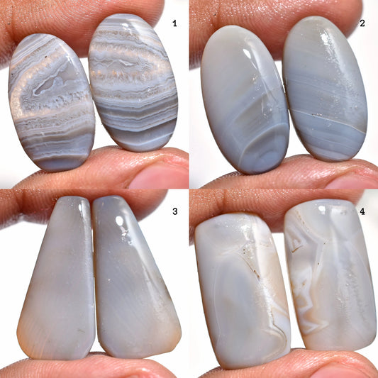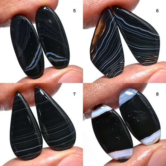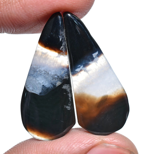 Seam Agate Gemstone Pair – Fancy shape, Loose Stone for Earrings Pair