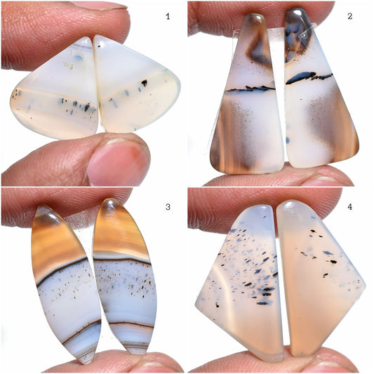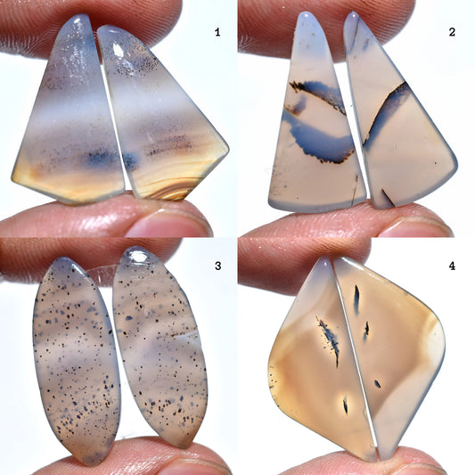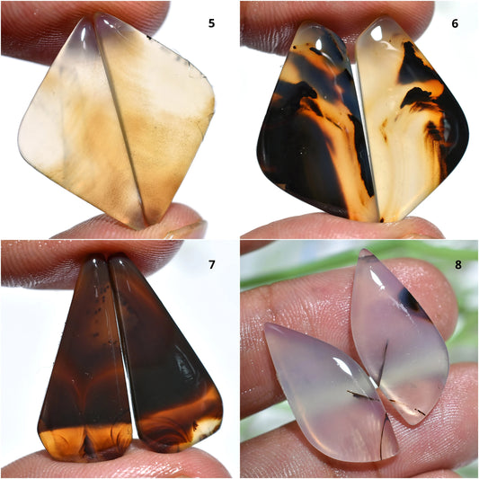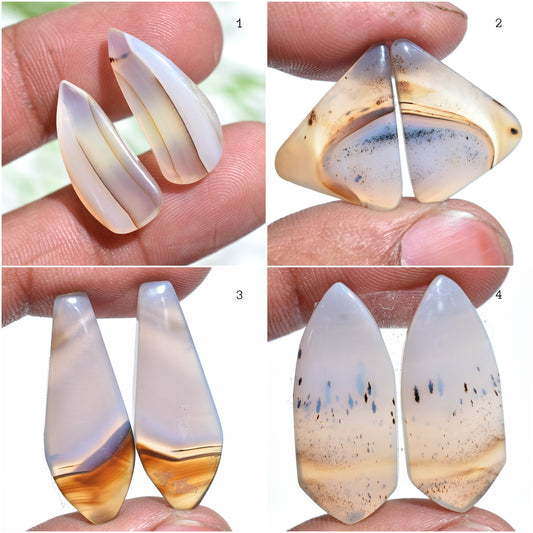 Natural Montana Agate Pair - Agate Cabochon Loose Gemstone for Craft Gifts