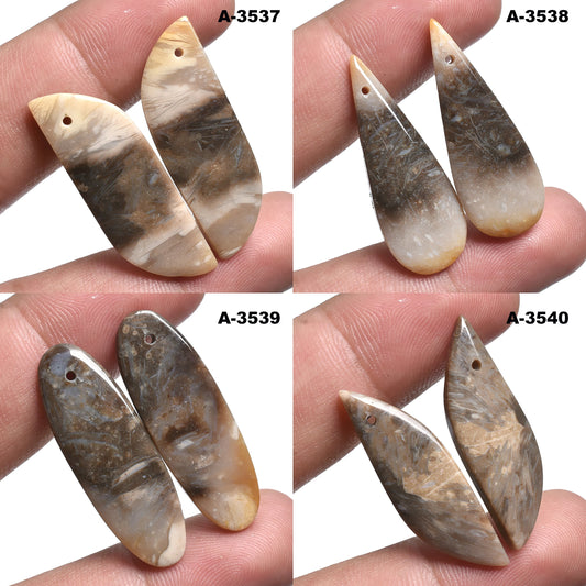 Natural Palm Root Matching Pair Gemstone, Top Drill Smooth Cabochon
