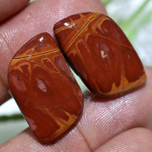 Fancy Shaped Matched Noreena Jasper Gemstone Pair - Natural Cabochon for Earrings