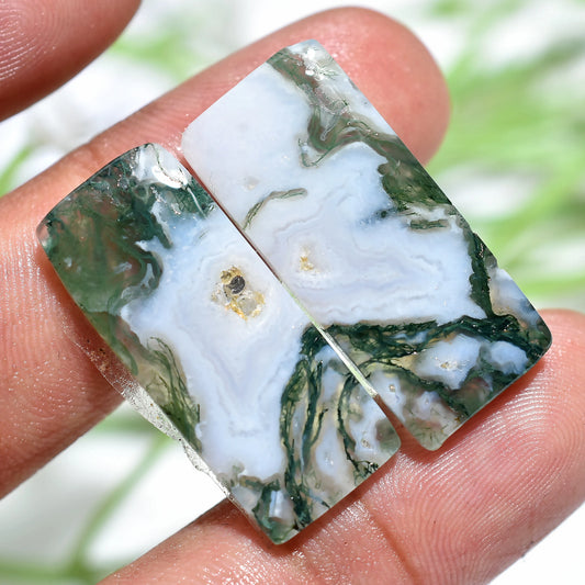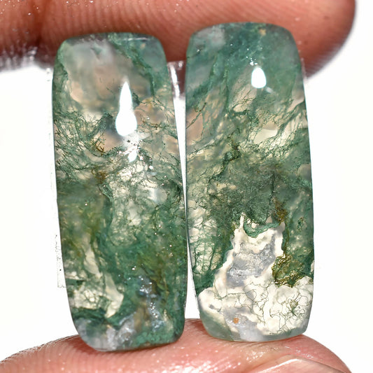 Natural Rectangle Moss Agate Pair – Polished Cabochons for Custom Jewelry Design