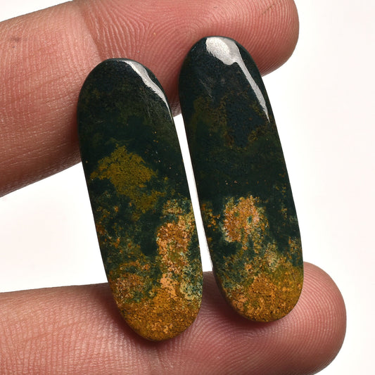 Rare Ocean Jasper Gemstone Pair - Loose Cabochon Pair