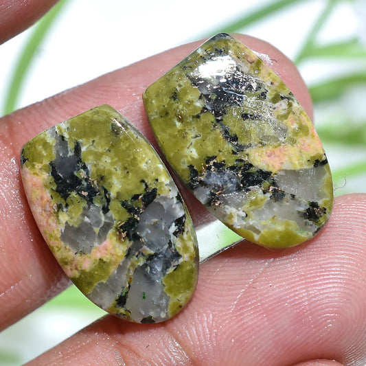 Natural Unakite Jasper Cabochon Pair - Rectangle-Fancy Shaped Stone