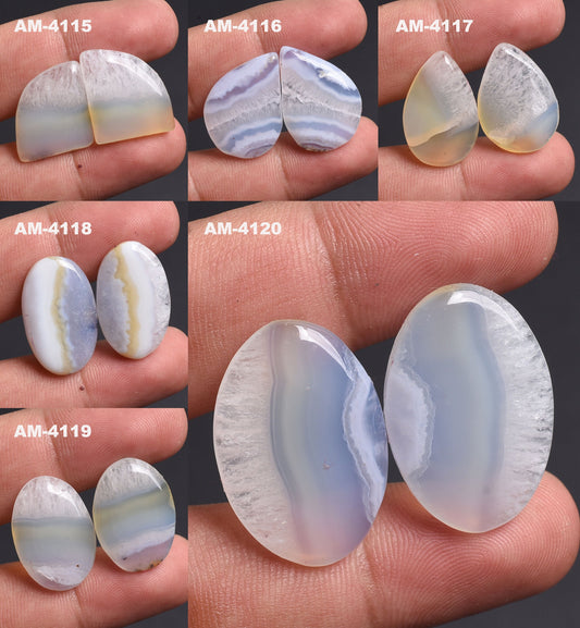 Natural Blue Lace Agate Cabochon, Matched Earring Pair