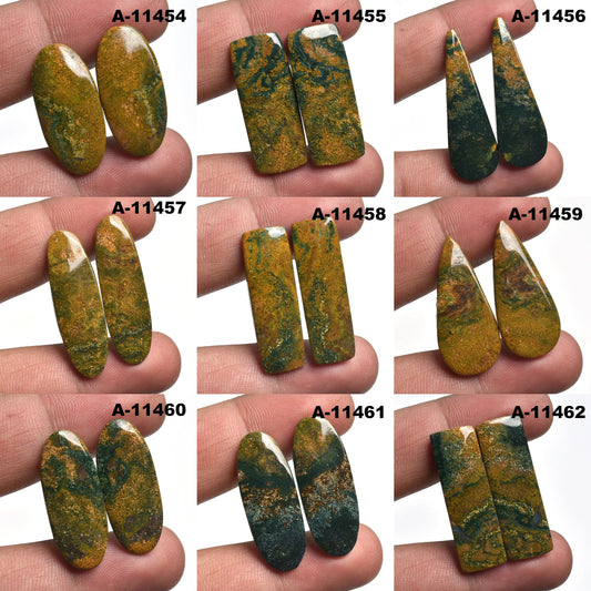 Natural Moss Agate Earring Pairs - Unique Gemstone