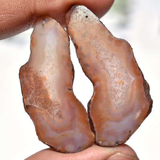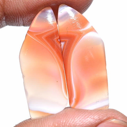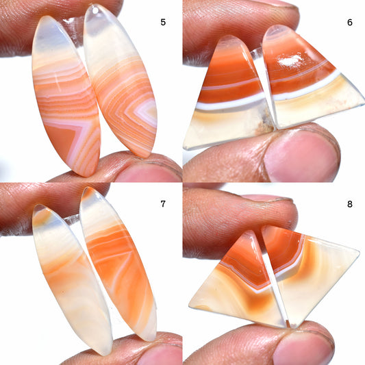 Natural Orange Banded Agate Matched Cabochon Pair for Earrings
