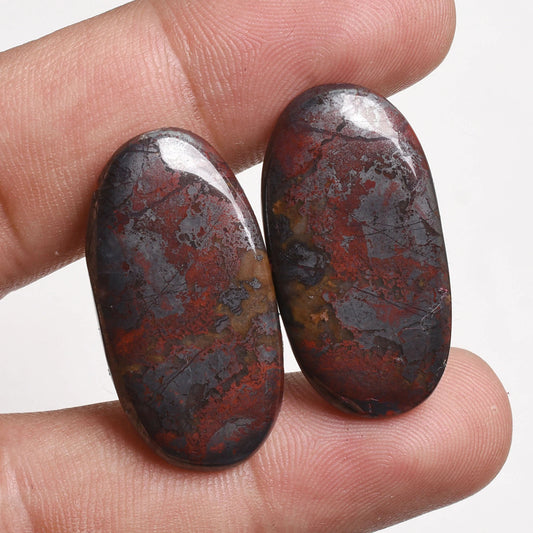 Multi Jasper Cabochon Pair - Mixed Gemstone Matching Pair for Earrings