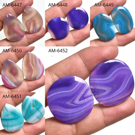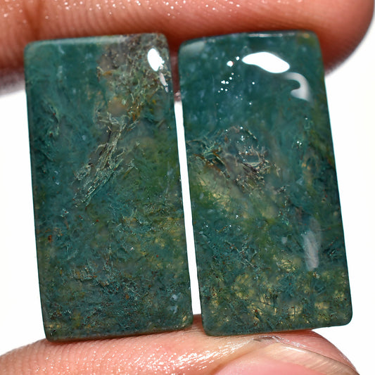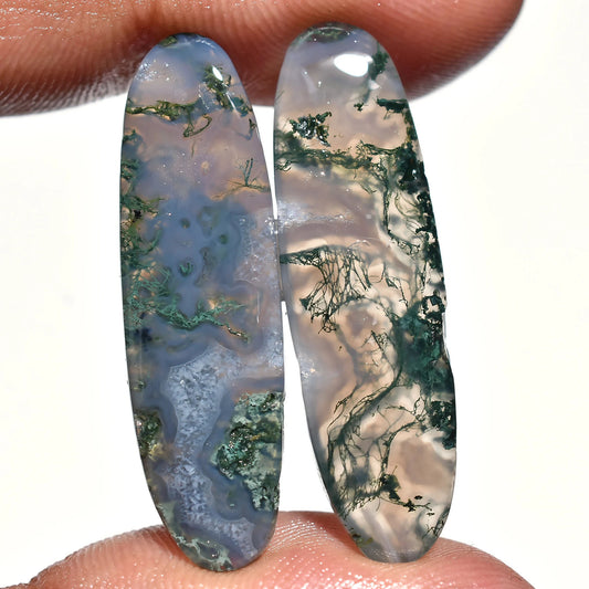 Natural Unique Moss Agate Pair - Fancy Smooth Cabochons for Custom Earrings