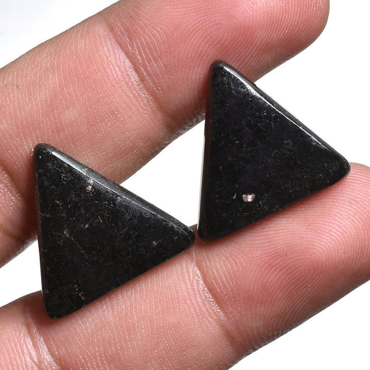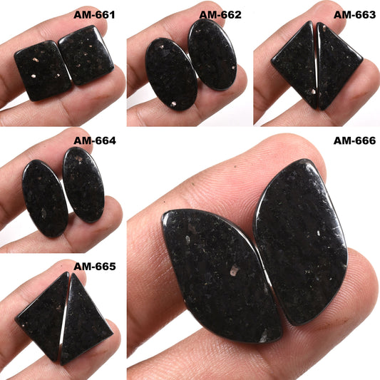 Natural Golden Nuummite Cabochon Pair - Hand-Polished Gemstones for Jewelry