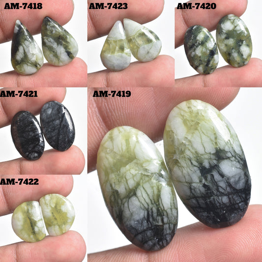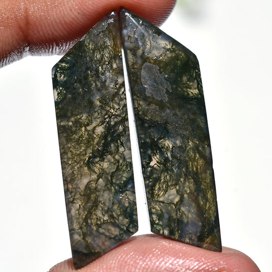 Top Moss Agate Pair Cabochon - Fancy Shape Natural Loose Gemstones for Pair