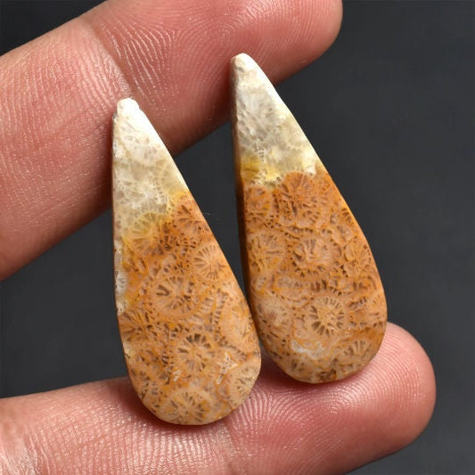 Natural Fossil Coral Gemstone Earrings Pair - Designer Loose Fossil Coral
