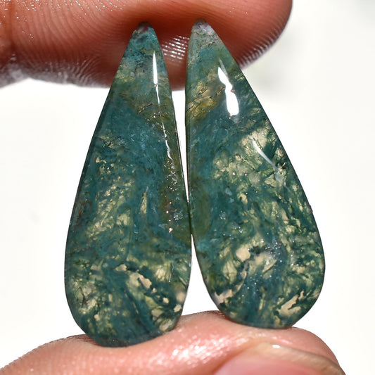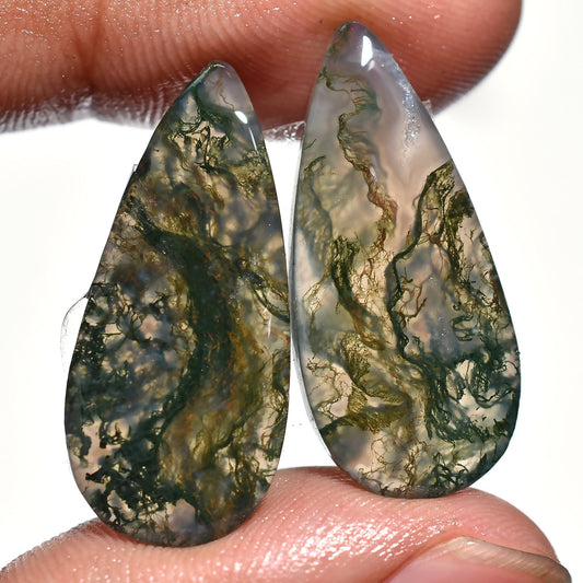 Moss Agate Pair Earring Cabochons - Pear-Shaped Loose Matching Set for Custom Earrings