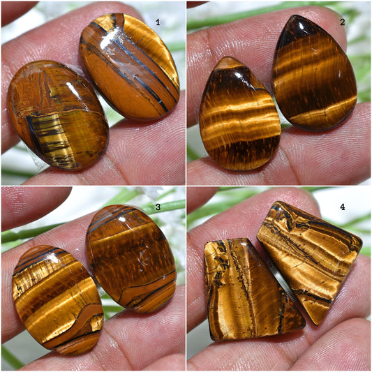 Natural Yellow Tiger Eye Gemstone Pair, Fancy Shaped Stone