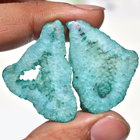 Blue Window Druzy Solar Quartz Pair – Sparkling Natural Gemstones