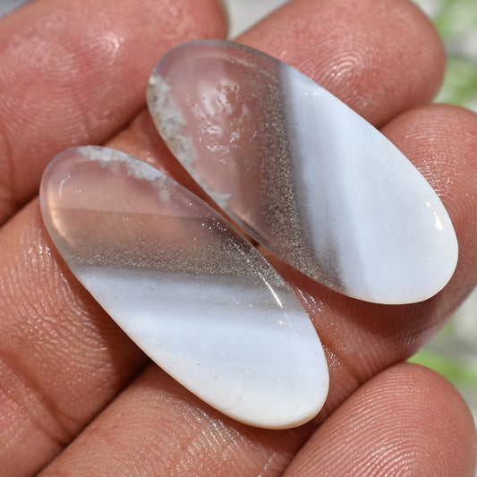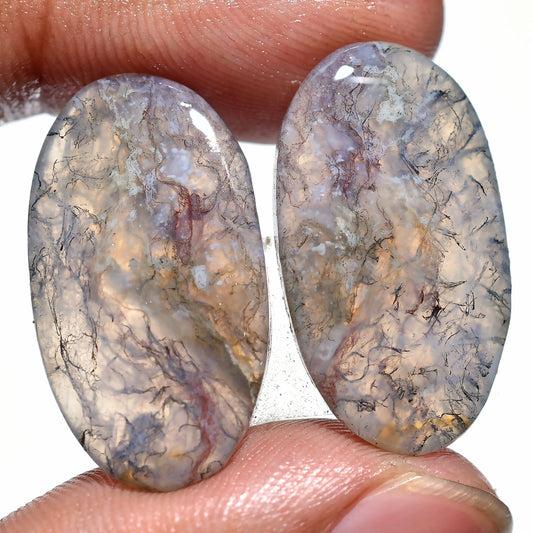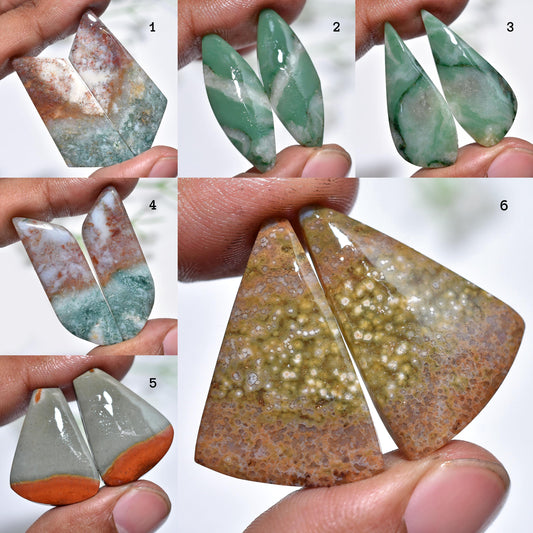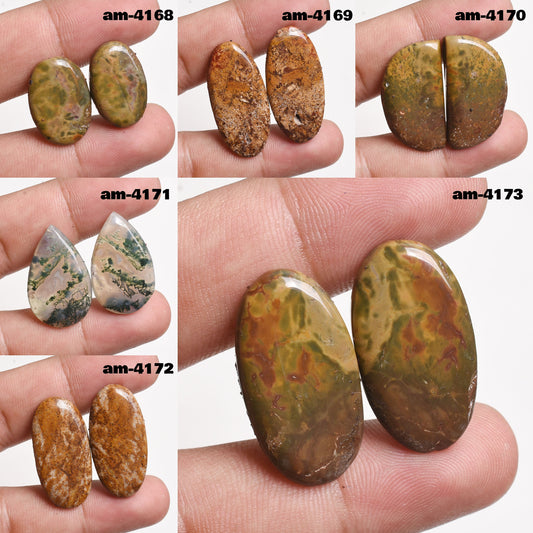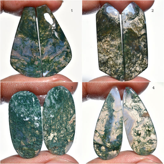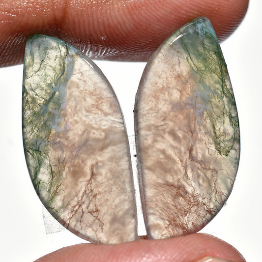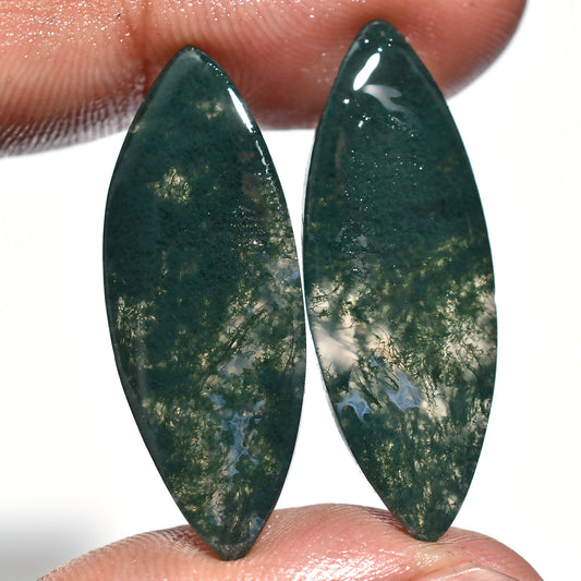 Natural Moss Agate Pair Cabochon – Fancy Shaped Matched Gems for Jewelry & Earrings