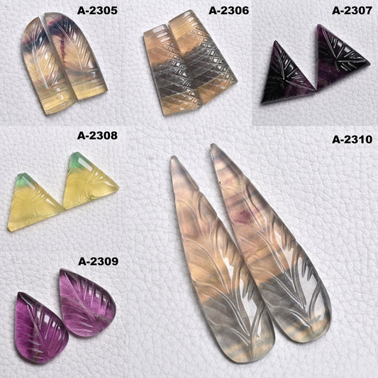 Hand Carved Fluorite Earring Pair - Multi-Color Flower Gemstone Carvings