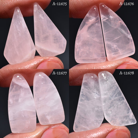 Pink Quartz Stone – Matching Rose Quartz Cabochon Pairs