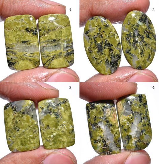 Natural Unakite Pair Cabochons – Smooth Flat Back Green Unakite for Custom Earrings